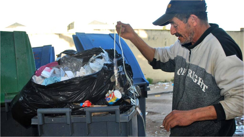 “تلك الاكياس السّوداء التي يجمعها هذا العامل ذو ال 70 عاما لم تكن تحوي مجرّد فضلات منزليّة، بل كمّية من إبر الحقن وأعضاء بشريّة في بعض الأحيان، لتبرز كتهديد لا يحسن هذا العامل فهمه جيّدا ولم يتم تنبيه من قبل المشرفين على المستشفى أو الاطبّاء العارفين بمدى الخطر الذي تمثّله تلك النفايات الصحيّة والإستشفائيّة والمصنّفة بأنها خطيرة جدا”.